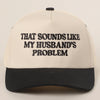 Add a dose of humor to your outfit with this playful embroidered cap featuring the phrase "THAT SOUNDS LIKE MY HUSBAND'S PROBLEM." With a neutral cream crown and an array of colorful visors and button combinations—this two-tone cap makes a lighthearted statement while keeping your look fresh and fun. Perfect for casual wear, girls’ outings, or as a cheeky gift, this hat blends bold personality with everyday comfort. Whether you're joking around or making a stylish statement, this cap says it all with a smile.