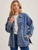 The button-down shirt denim jacket with pockets combines the casual appeal of a denim jacket with the classic look of a button-down shirt. This versatile piece features a full button-down front, allowing it to be worn open or closed, depending on your style. The jacket is crafted from durable denim, offering both comfort and durability. It includes multiple pockets, adding a functional element while enhancing the jacket's rugged, utilitarian aesthetic. This jacket is perfect for layering over casual outfits or adding a touch of edge to more polished looks.