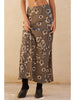 A floral-print satin maxi skirt with the following features: Bias-cut fabric. Elastic waist. Straight silhouette. Ankle length. Relaxed fit.